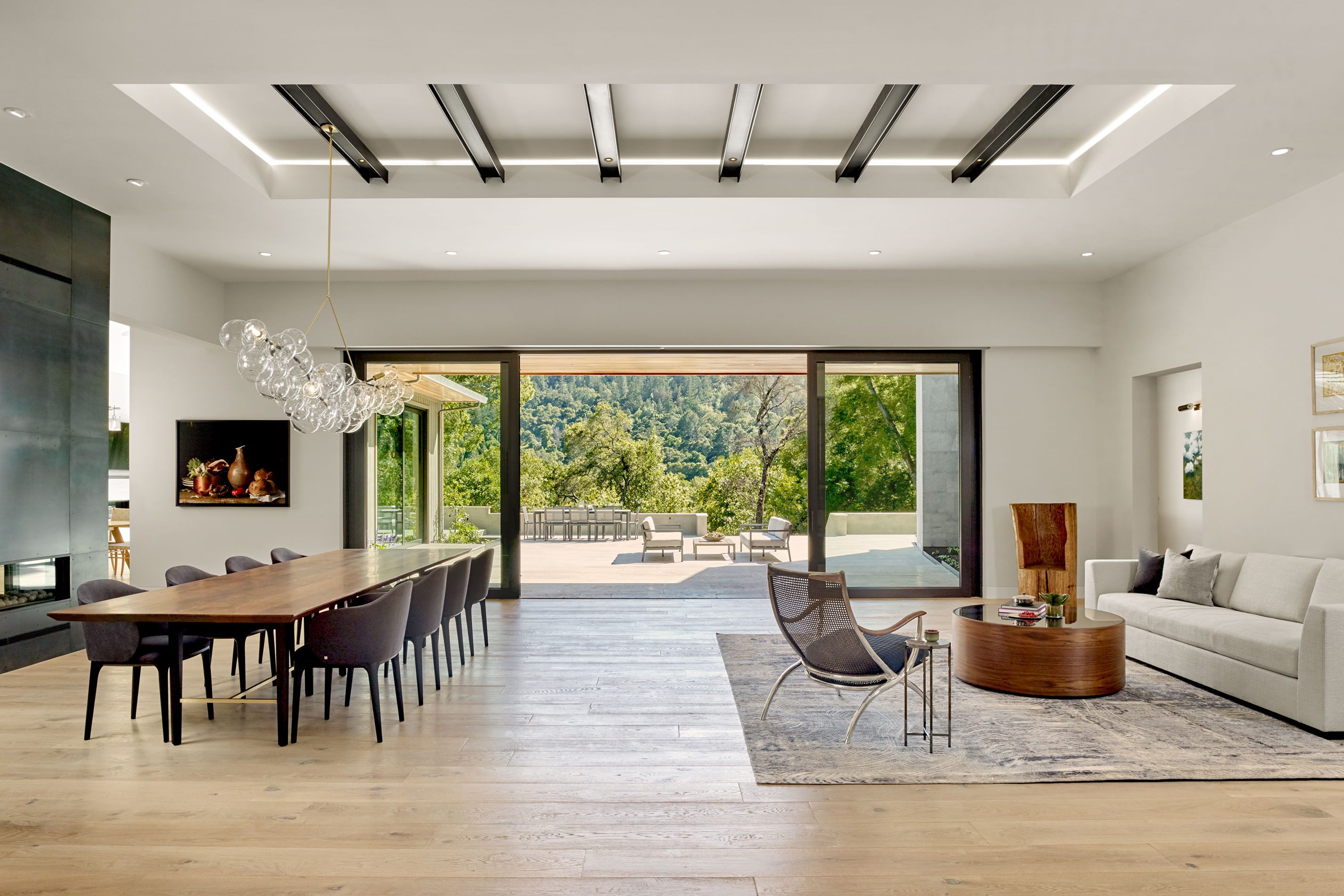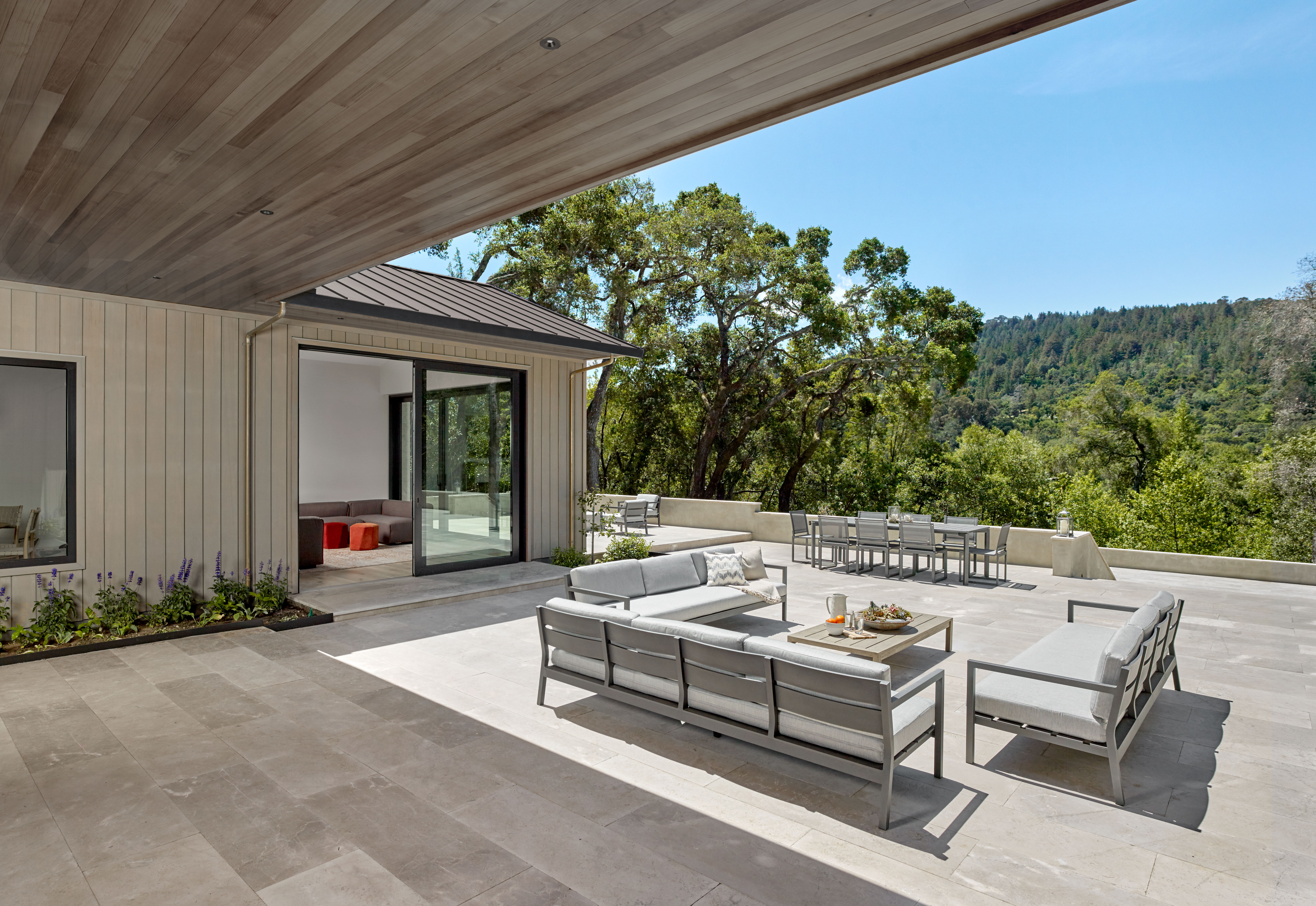 New ~6,000 sf residence, new 3,000 sf guesthouse with a basement, new garage with gym, and overall site design located in Woodside, CA completed in 2018