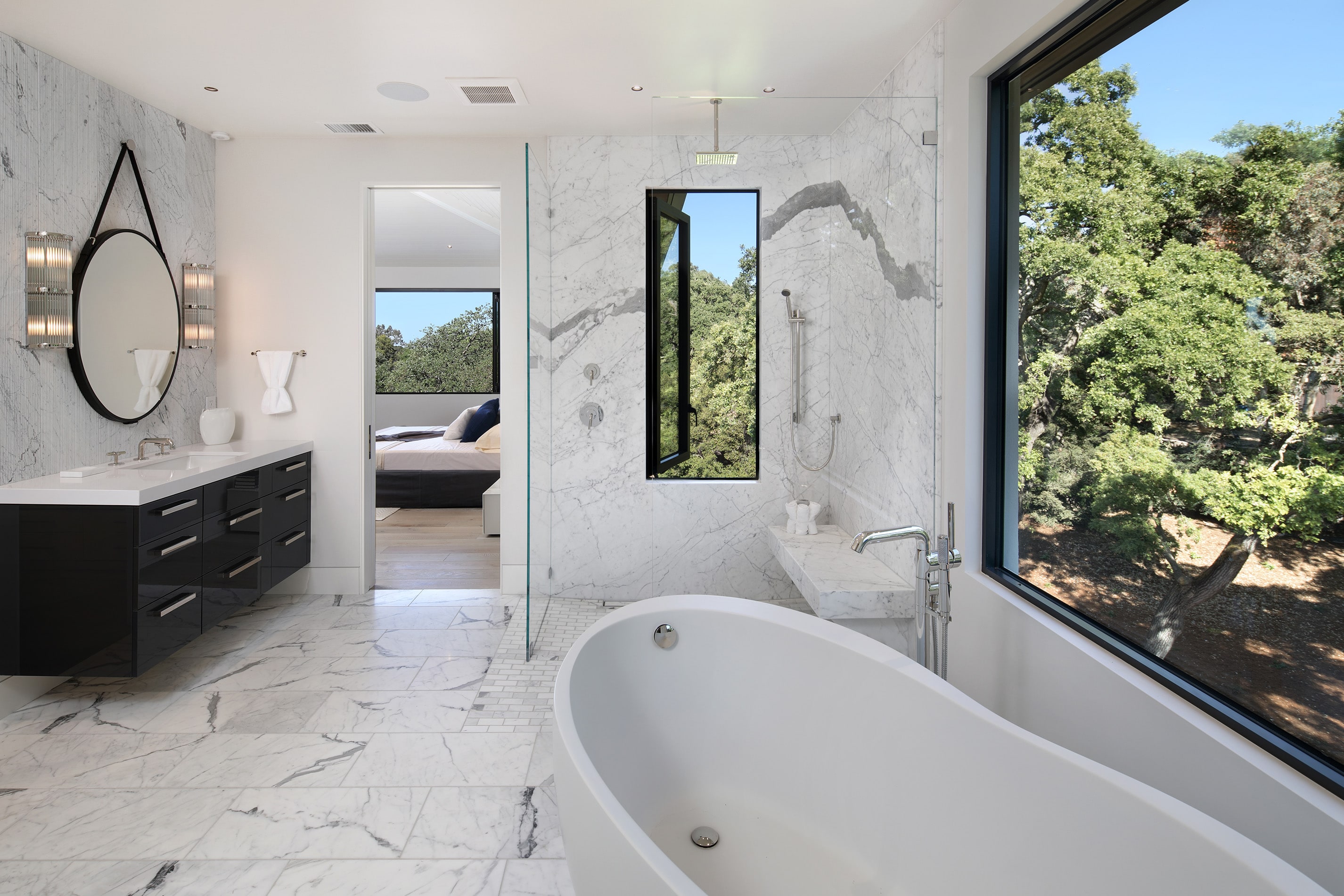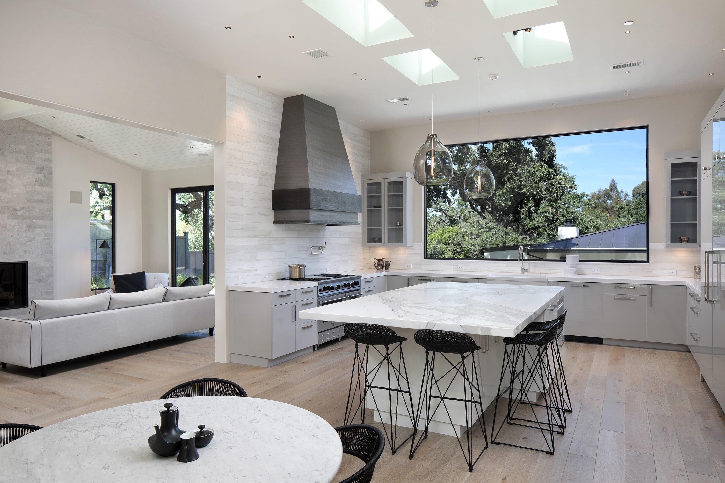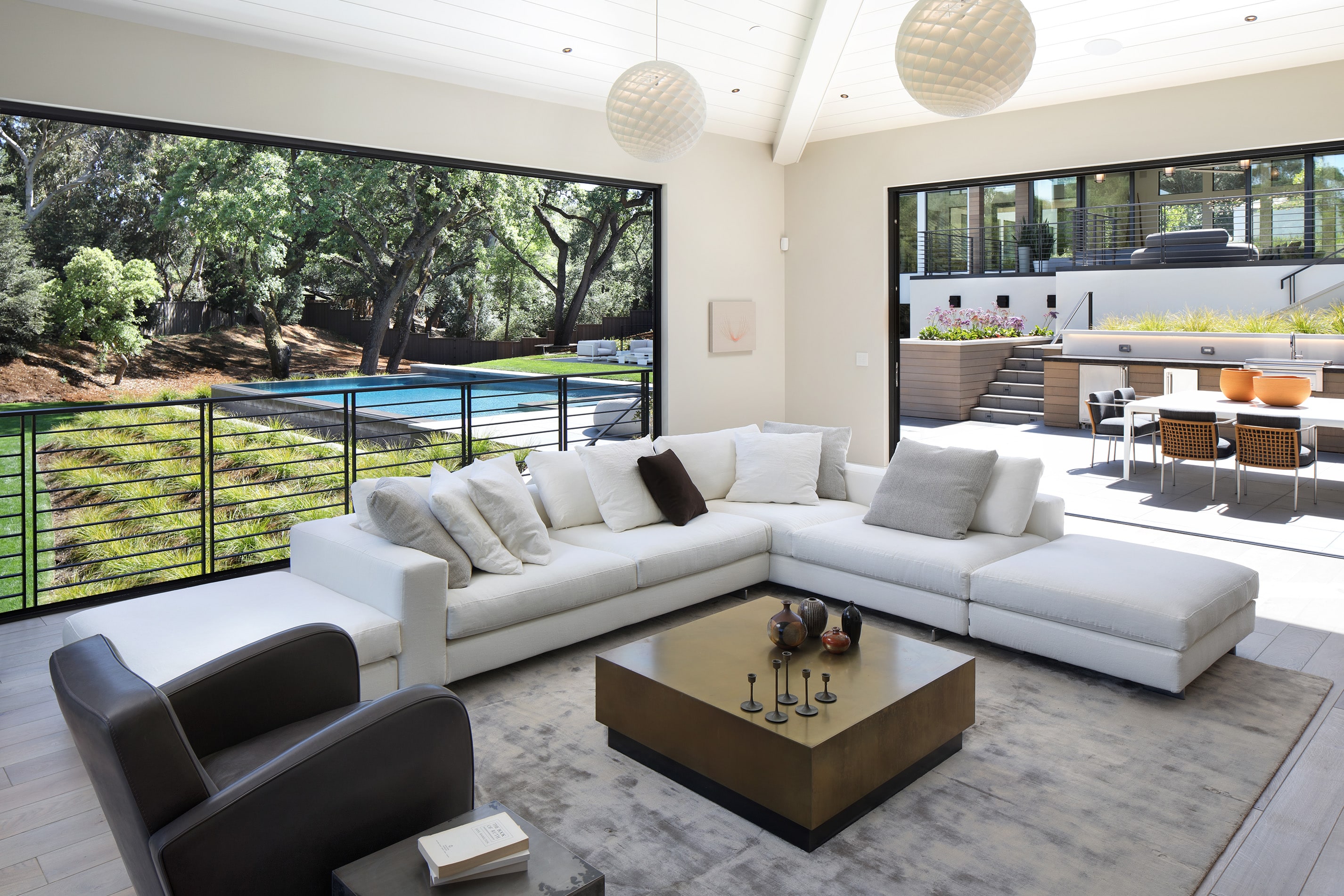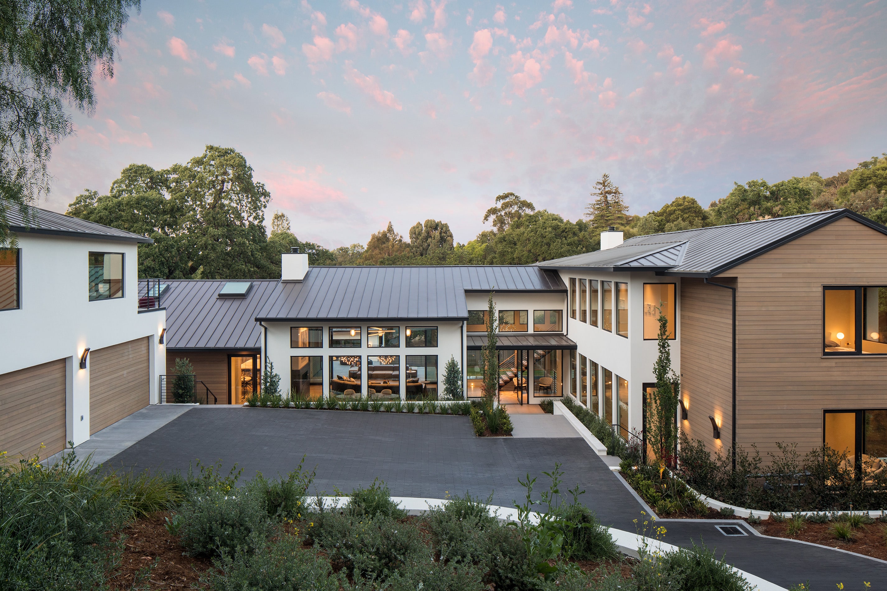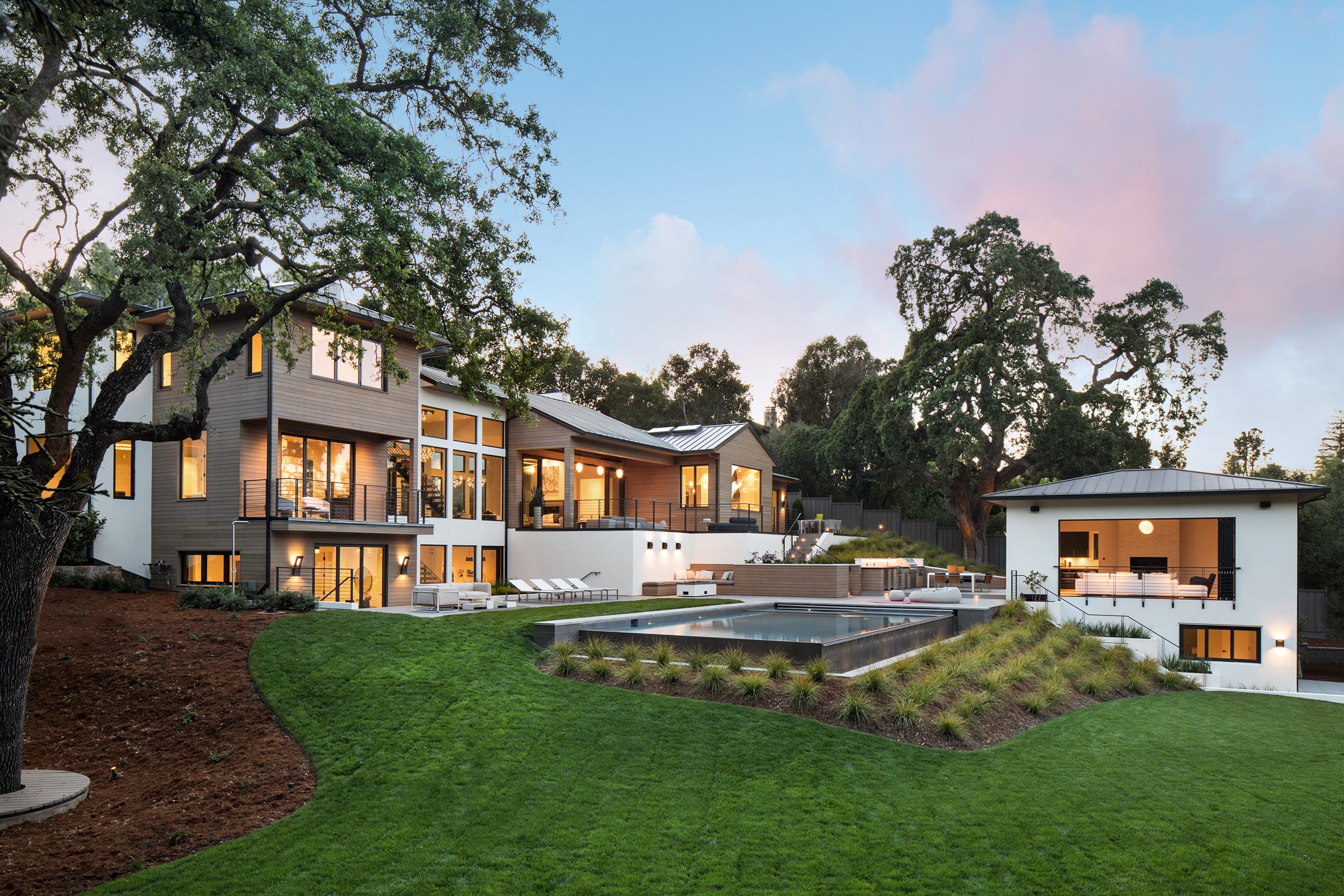 New ~10,000 sf residence with a basement, new 2,000 sf guesthouse with a basement, remodeled garage with accessory living unit above, and overall site design located in Palo Alto, CA completed in 2018