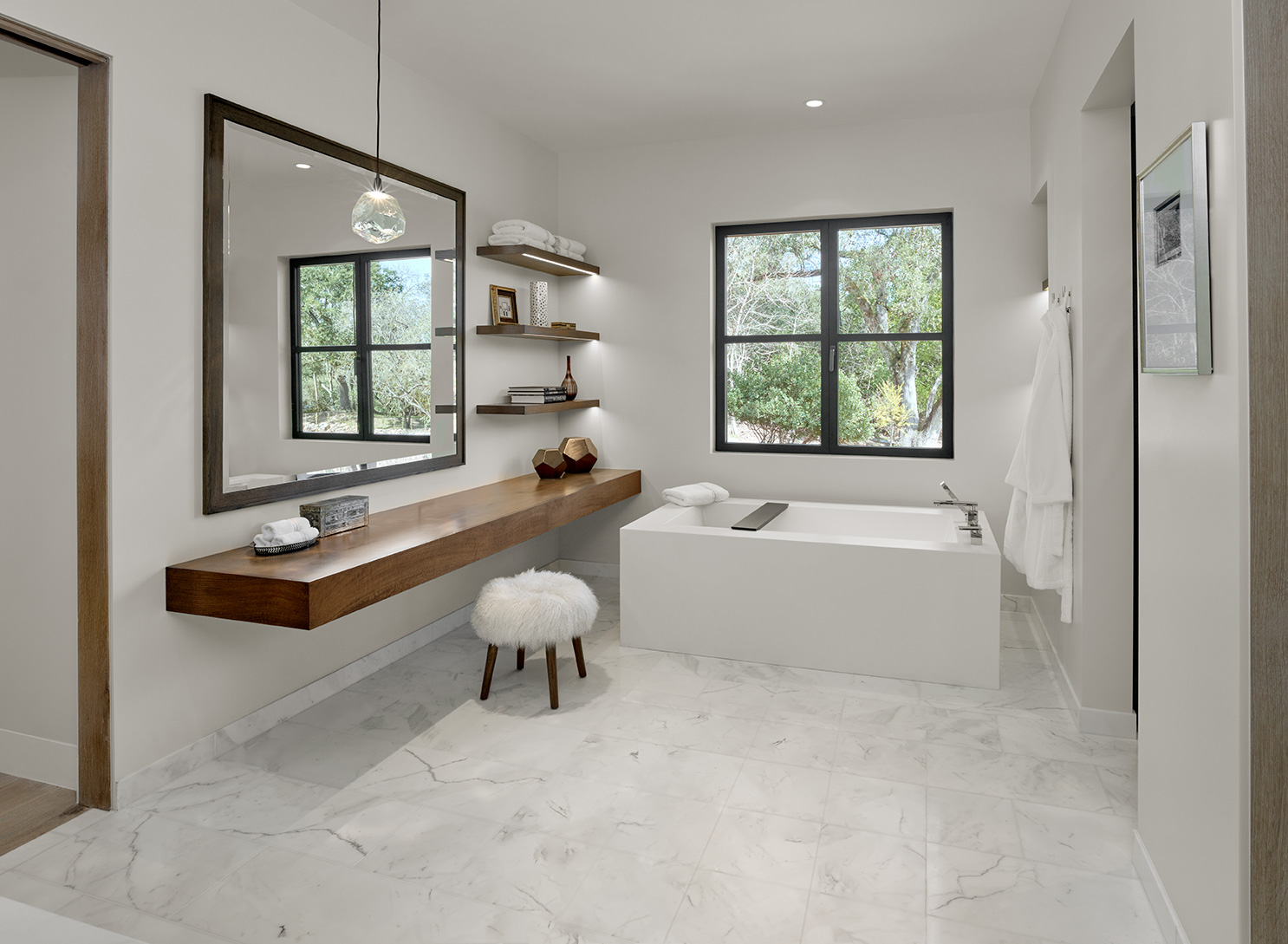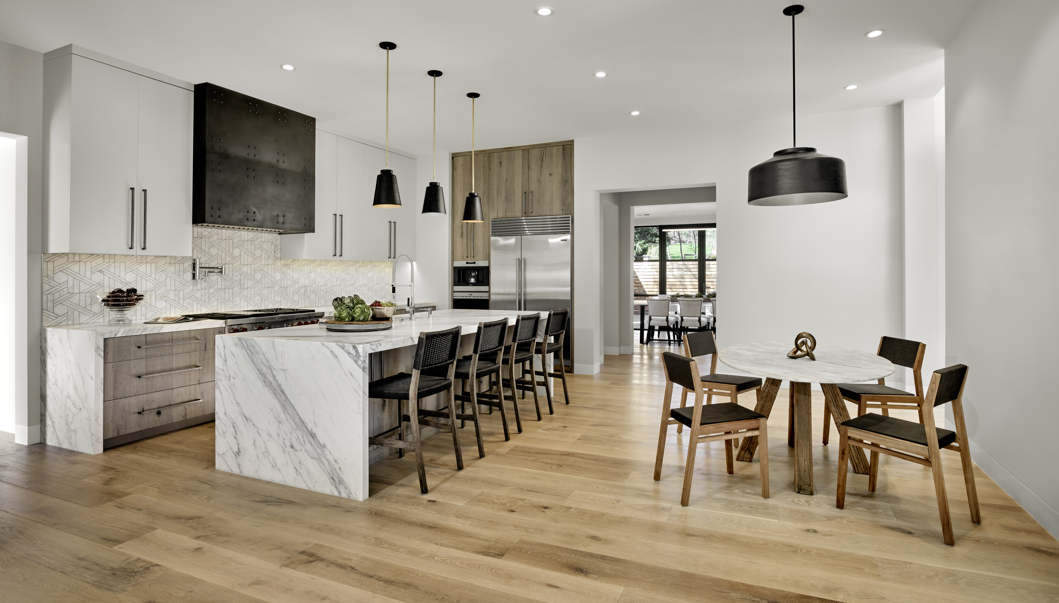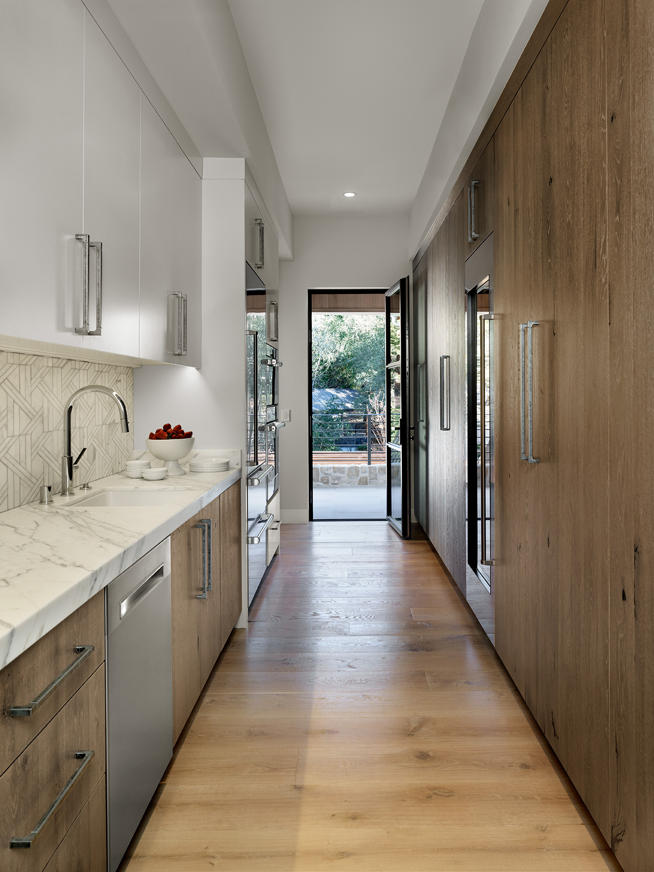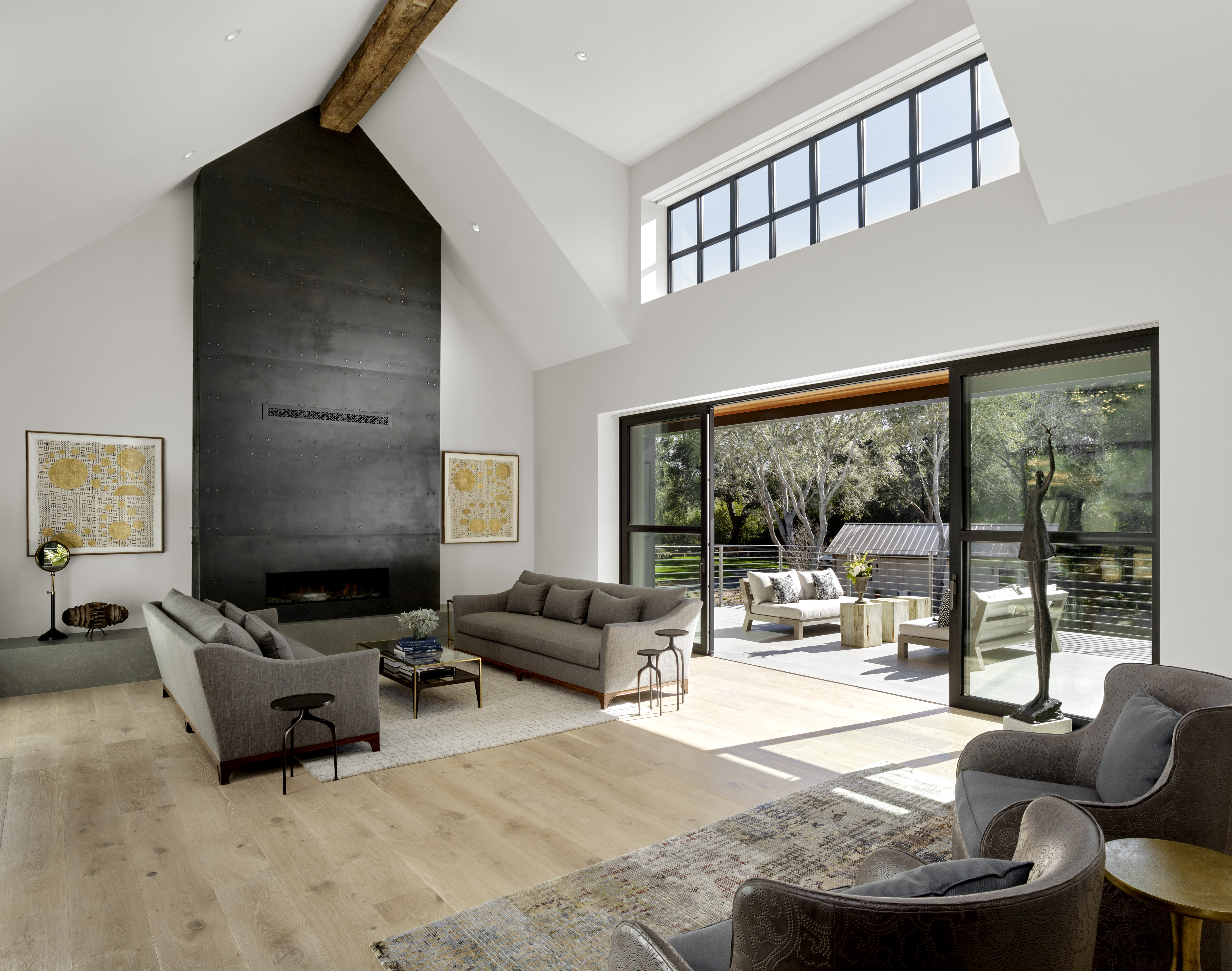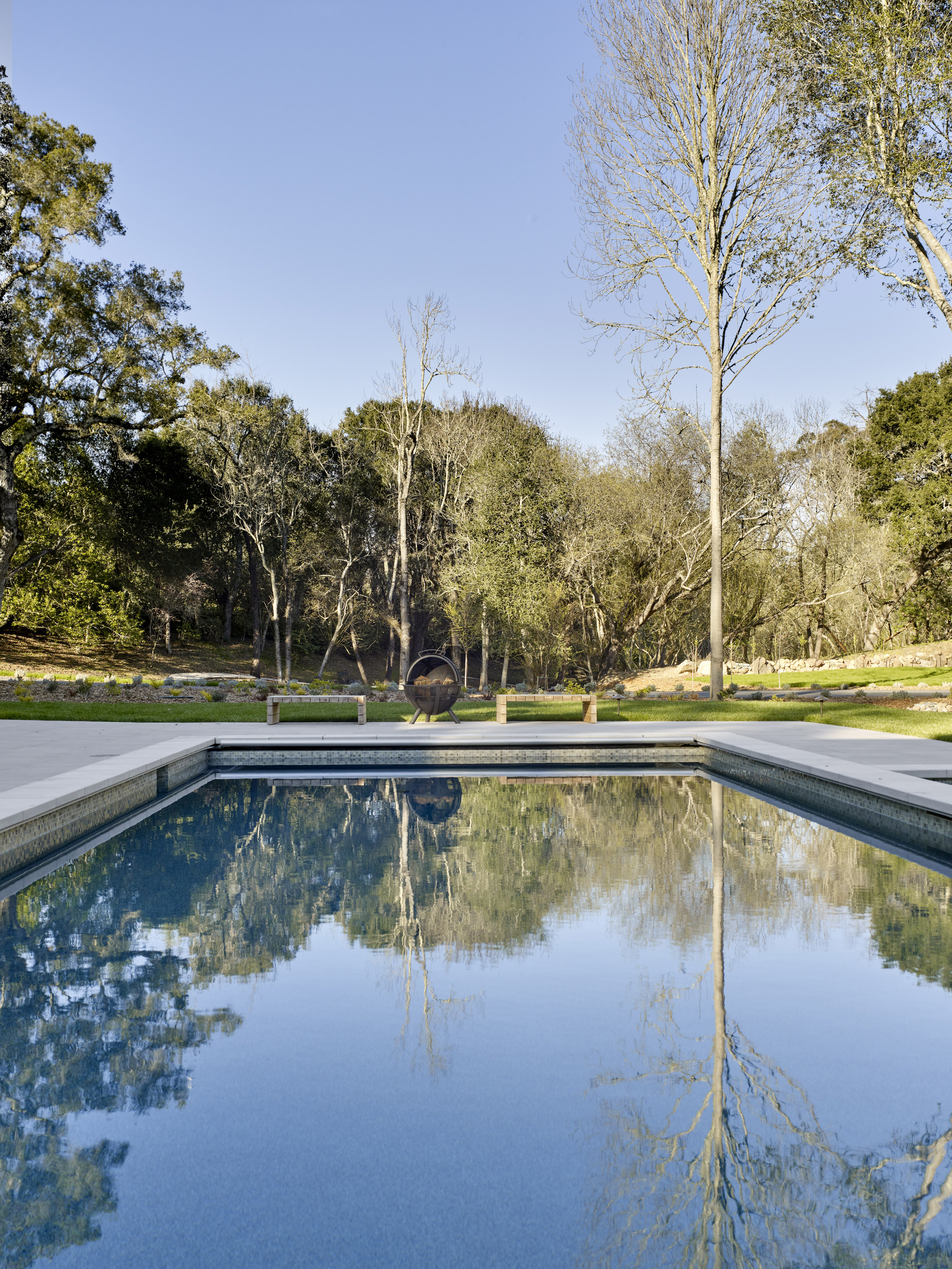 New ~9,500 sf two story residence with a basement, new detached garage, remodeled guesthouse and barn, and overall site design located in Woodside, CA completed in 2017.