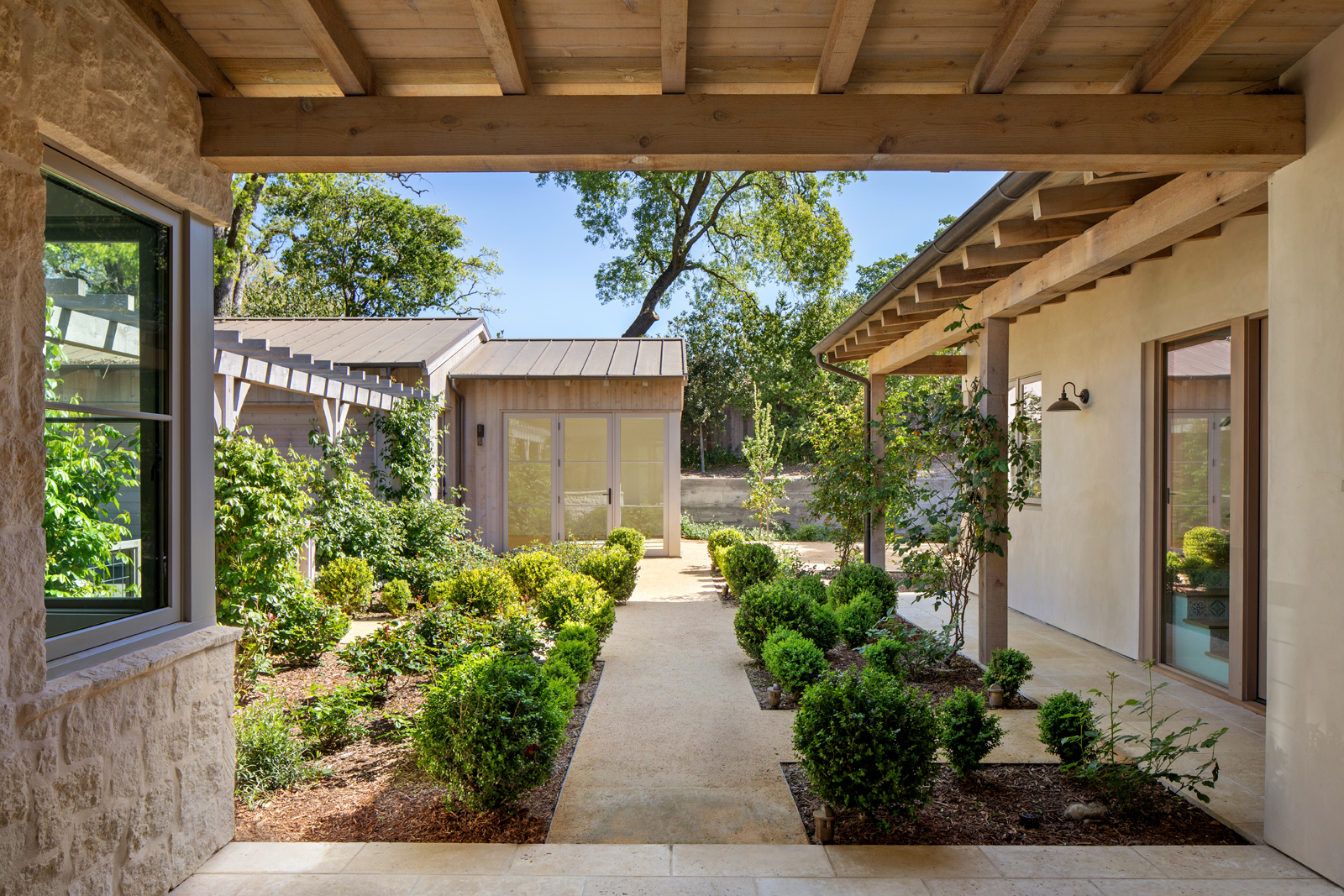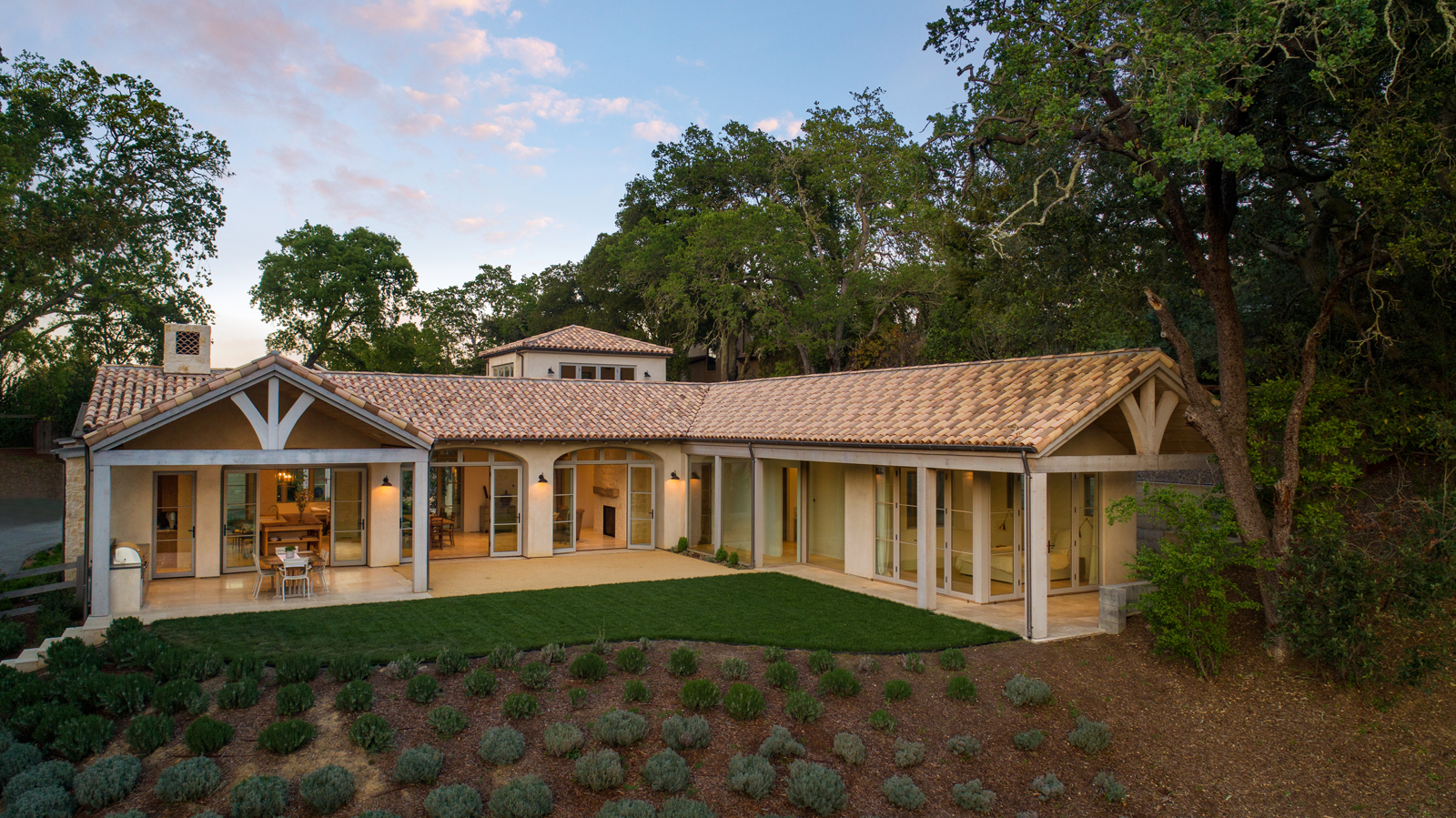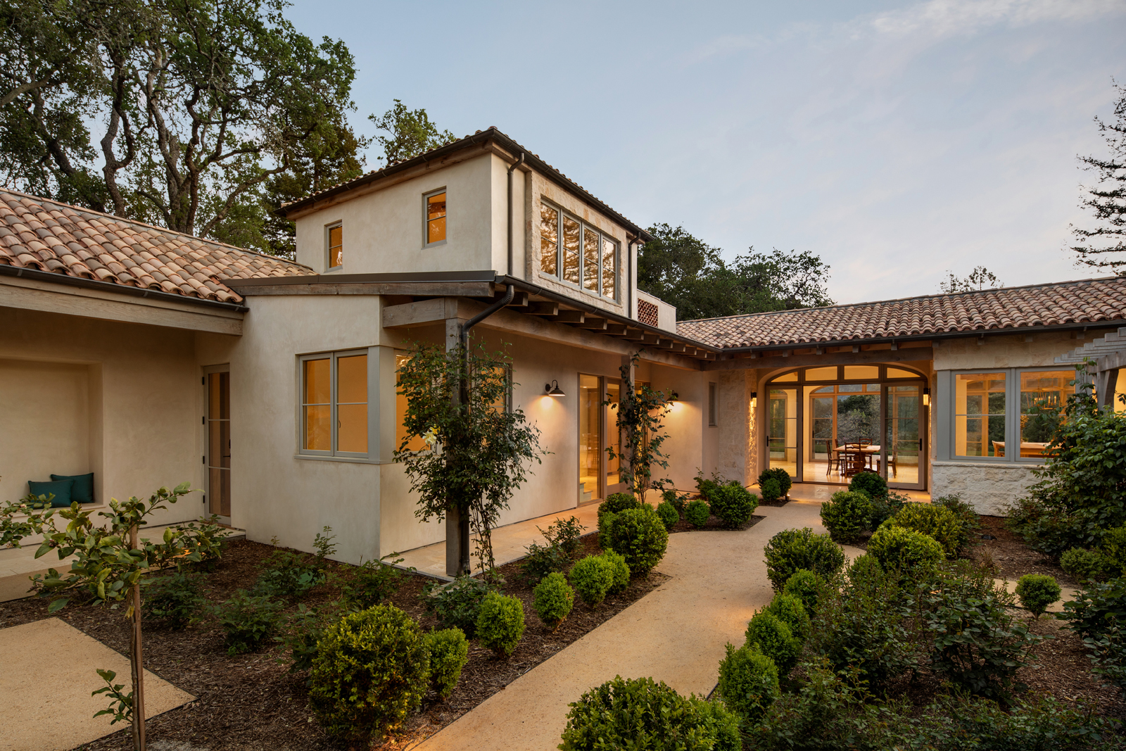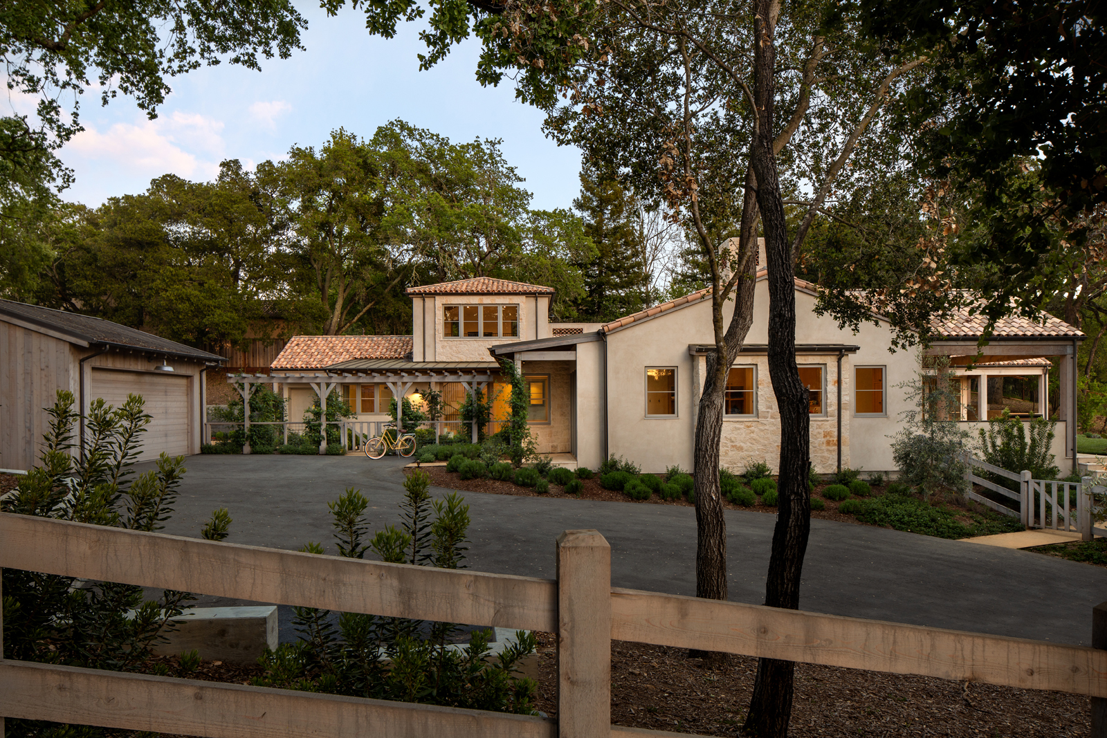 New ~6,000 sf residence with partial second floor, partial basement, new detached garage/yoga studio and overall site design located in Woodside, CA completed in 2019